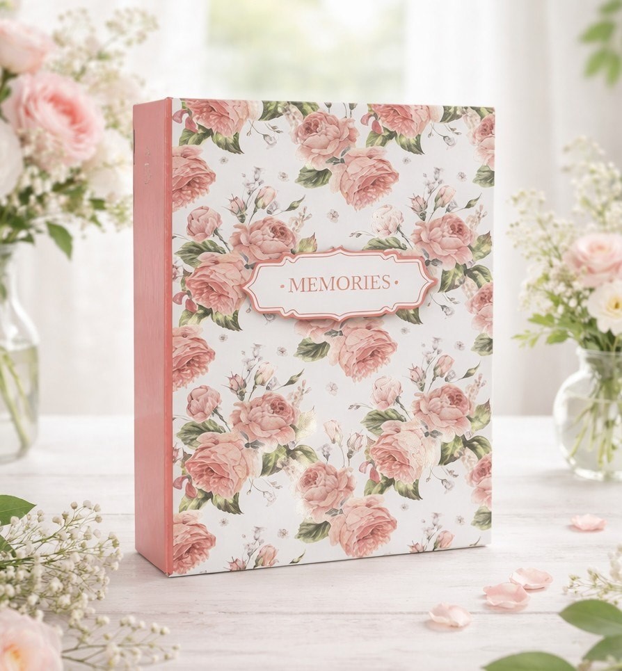 Fotoalbum 100 fotole mõõdus 10x15cm, erinevad lillemotiividega disainid, kiletaskutega, liimköites.
