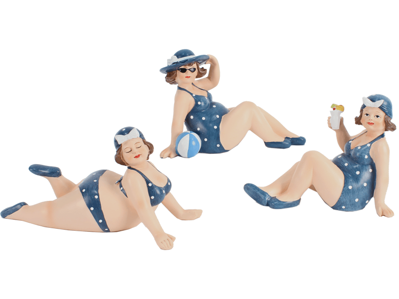 Rannadaam tumesinises kostüümis, 3 erinevat, mõõdud 14x11cm.