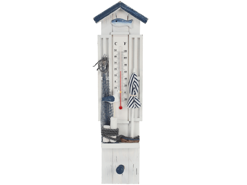 Termomeeter nagi, puidust mõõdus 12x3x 40cm, dekoreeritud mereteemaliste lisanditega.