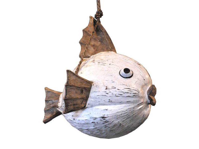 Kala, dekoratsioon on valmistatud kookospähkli koorest, mõõdus 28x28x30cm, riputatav.