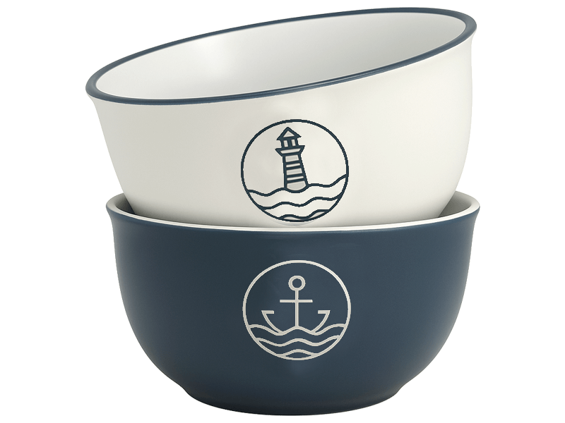 Hommikusöögi kauss mereteemaline, 2 disaini : ankur ja tuletorn, värvitoonid tumesinine ja valge, kauss mõõdus 14x14x6.5 cm. Meeleolu loov hommikusöögi kausside komplekt suvilasse ja aiamajja. Vaata ka teisi Marine tooteid.